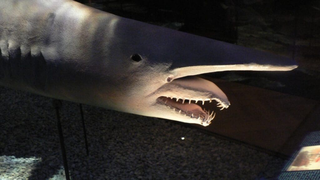Scale the concept up to a deep-sea predator and the result is the goblin shark (Mitsukurina owstoni), a species that takes jaw protrusion to an extreme. Most sharks extend their upper jaw slightly when biting. The goblin shark launches its entire jaw assembly forward like a slingshot, covering a distance equal to 8.6 to 9.4 percent of its total body length in a single strike.